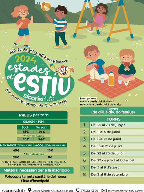 Estades d'Estiu Sícoris Club 2024 - Inscripcions socis/es obertes